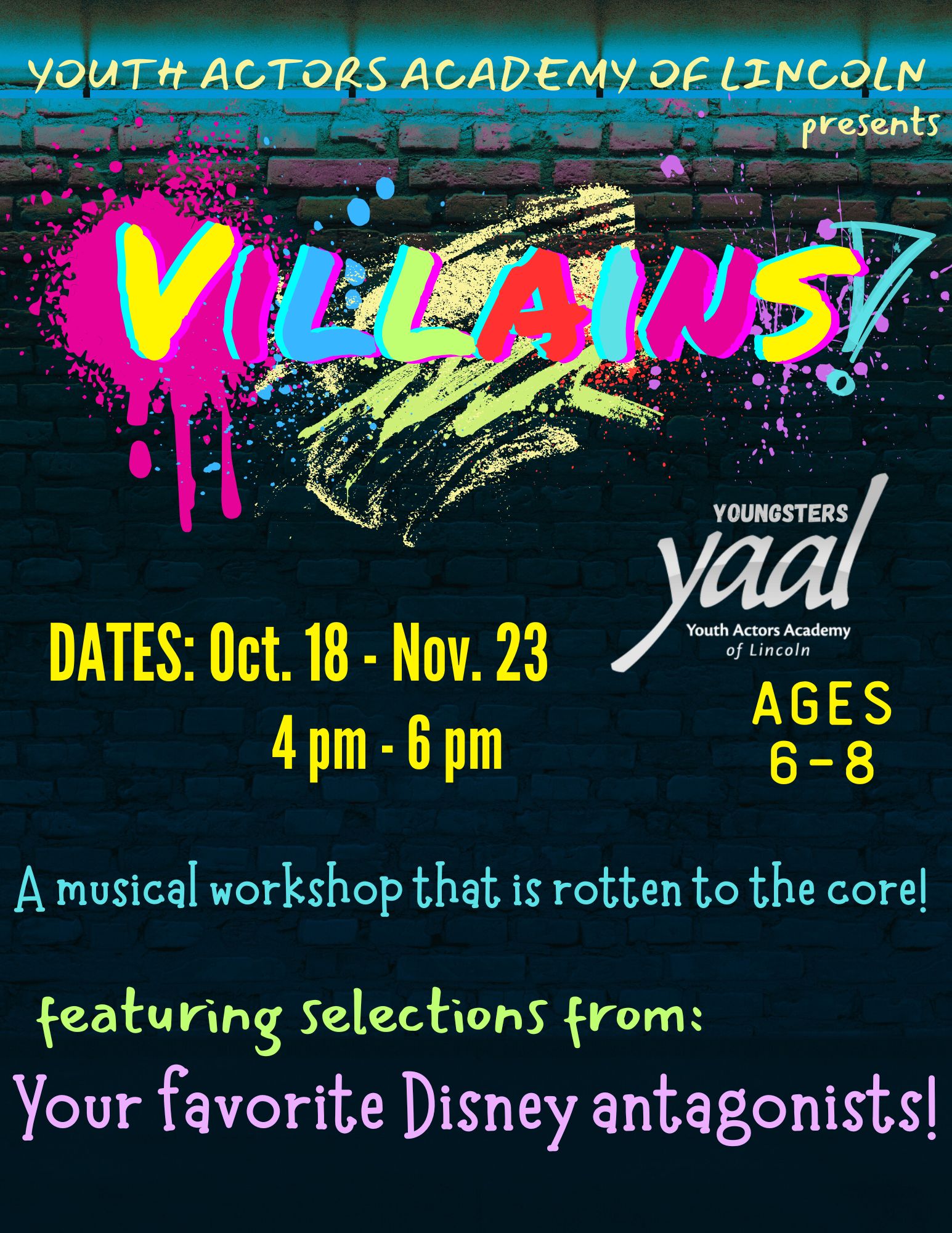 Step into a world of mischief, magic, and mayhem with our Disney Villains Youngsters class! This exciting and dynamic program invites young performers to learn the ins and outs of musical theatre with catchy villainous tunes, choreography, and scripts inspired by the songs from Disney's greatest antagonists. At the end of the program, the villains take center stage in a showcase where they’ll sing & dance their way into the hearts (and fears!) of the audience.